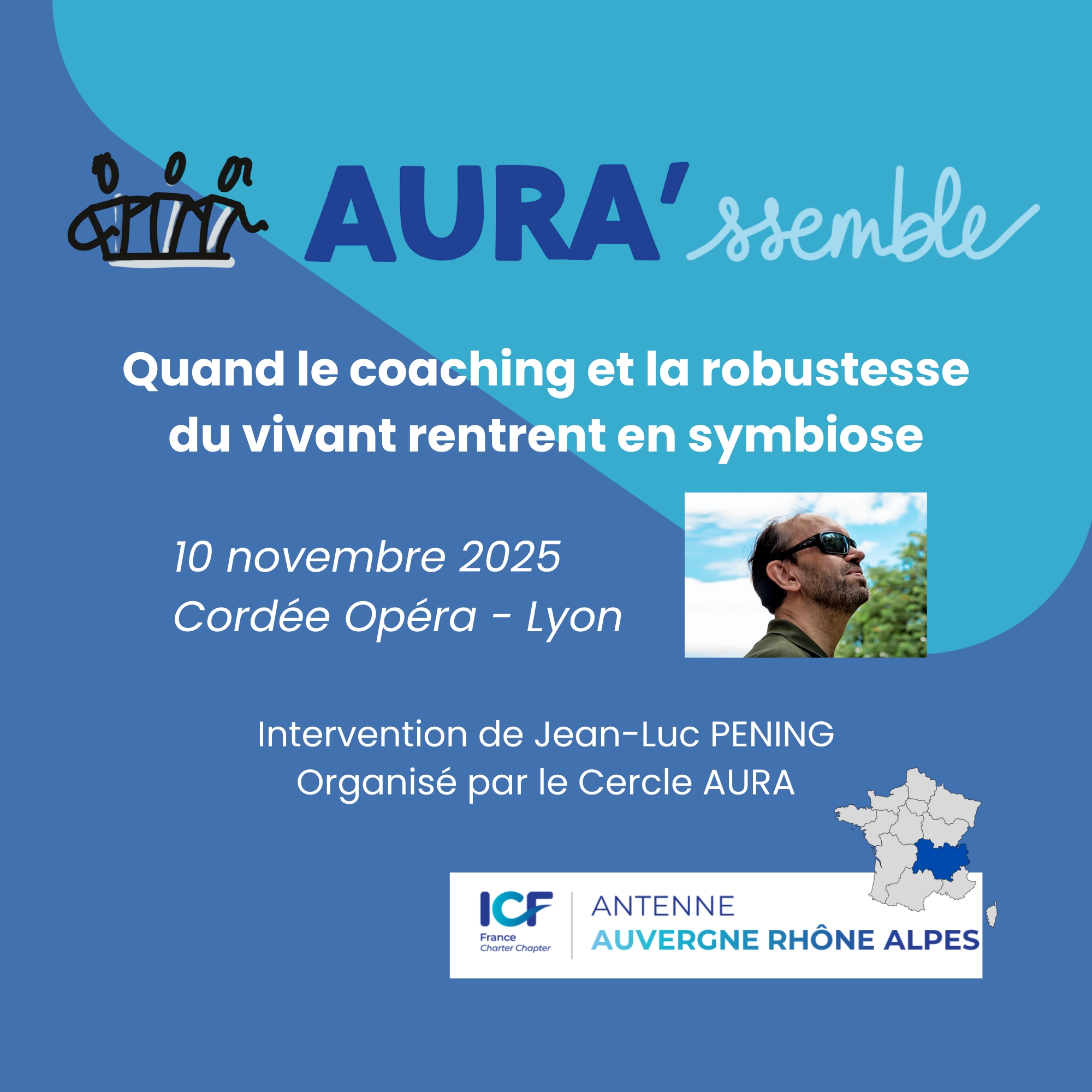 Voici le thème du prochain événement annuel AURA’ssemble ! Nous poursuivons notre réflexion et notre travail sur le thème du vivant avec une introduction au coaching en robustesse !