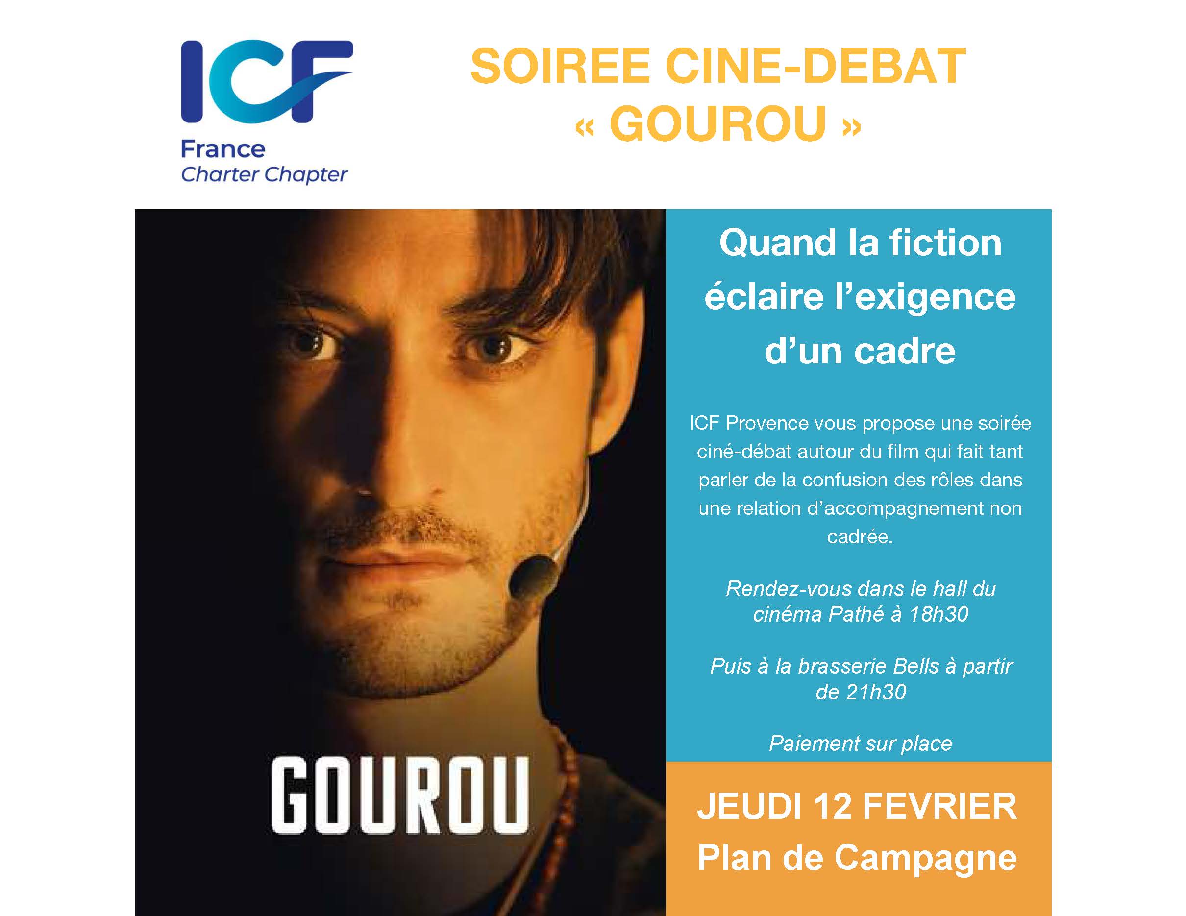 ICF Provence vous invite à un ciné-débat autour du film Gourou, jeudi 12 février au Pathé Plan de Campagne.