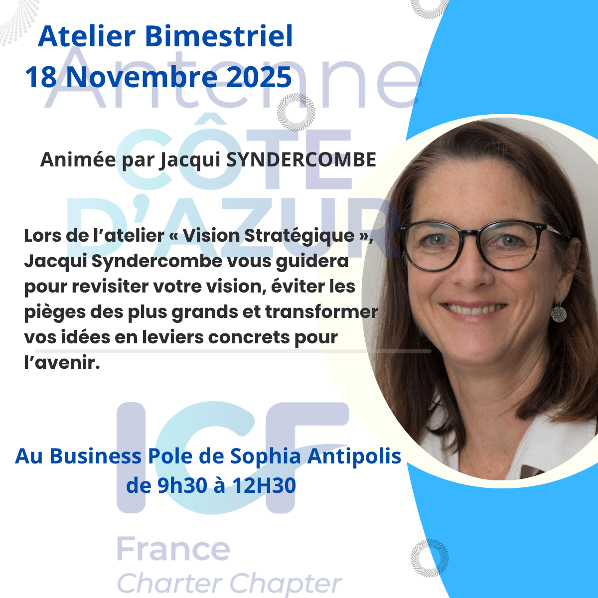 Lors de l’atelier « Vision Stratégique », Jacqui Syndercombe vous guidera pour revisiter votre vision, éviter les pièges des plus grands et transformer vos idées en leviers concrets pour l’avenir.