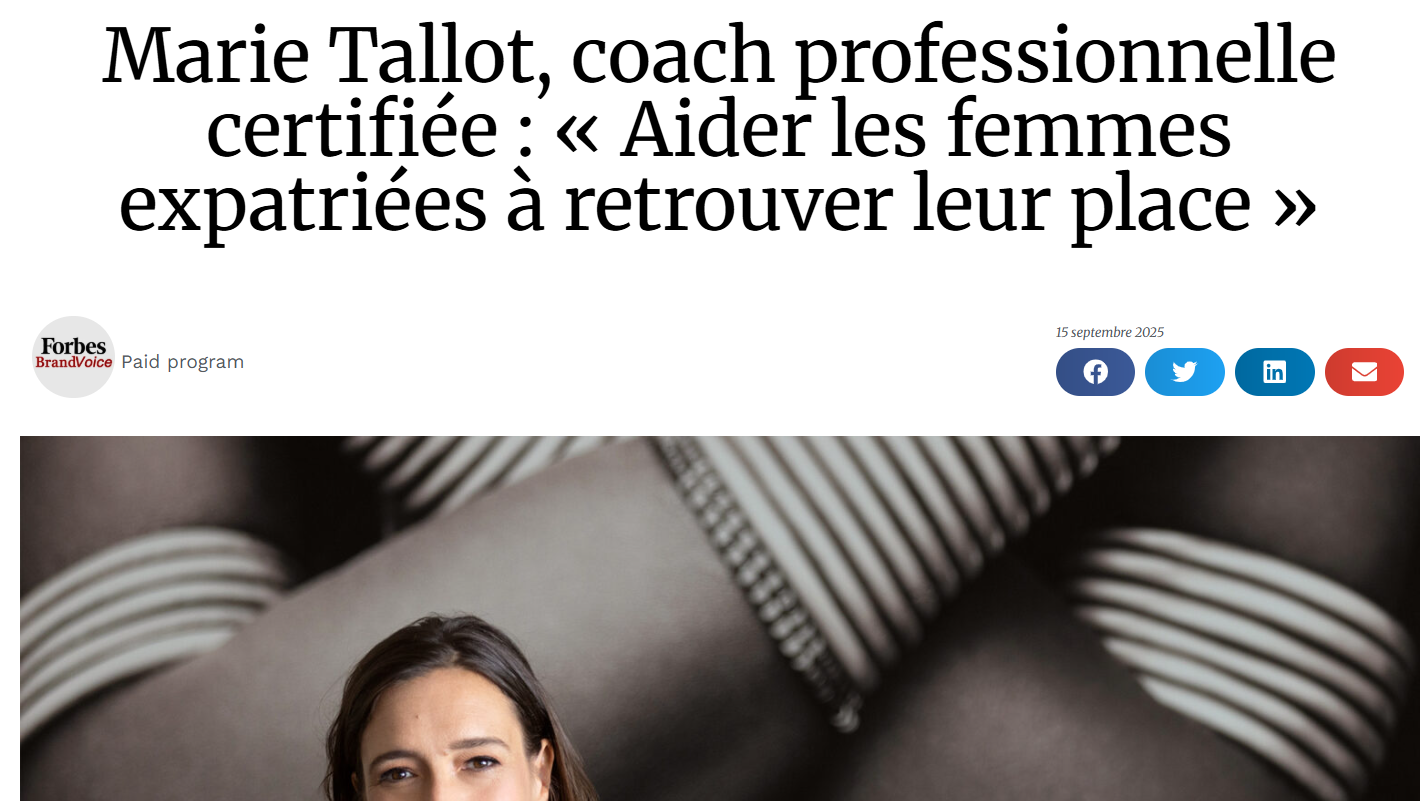 Après une carrière prometteuse dans le marketing de grands groupes comme Parfums Christian Dior ou Vente Privée (VeePee), Marie Tallot a tout remis à plat. Une expatriation, une perte de repères, un déclic : aujourd’hui coach professionnelle certifiée RNCP, elle accompagne les femmes en mobilité int...